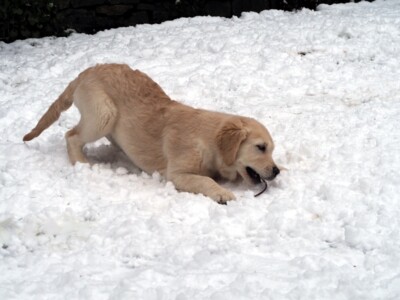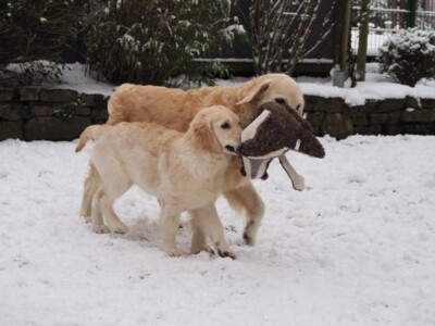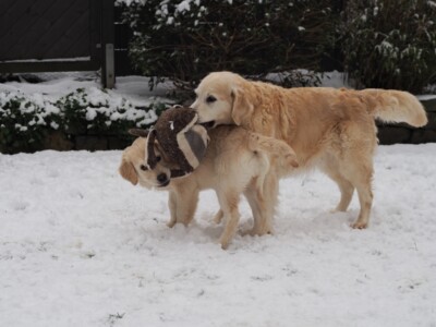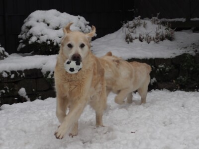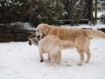 Und dann kam er doch noch – der erste richtige Schnee für Niva. Wie eigentlich all unsere Hunde, war auch sie von der weißen Pracht sehr schnell angetan. Mit Plüschtier und Ball wurde also im Garten begeistert gespielt. Nahla lies sich natürlich nicht lange bitten. Smilla dagegen schaute sich das Geschehen lieber aus sicherer Entfernung an und genoss den Schnee eher auf unseren Spazierrunden.