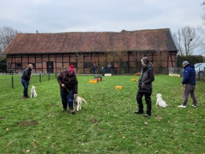 Da wir mit Niva endlich wieder die Möglichkeit haben regelmäßig zur Hundeschule gehen zu können, sehen unsere Wochenenden seit Anfang des Jahres wieder etwas anders aus 😉 Ausgeschlafen wird nur noch am Sonntag, denn Samstags heißt es „Auf zum Training“. Um 10 Uhr treffen wir uns mit Nivas Brüdern Finley, Floyd, Milo und Veikko auf dem GRC Ausbildungsplatz der Retrieverfreunde Beckum.