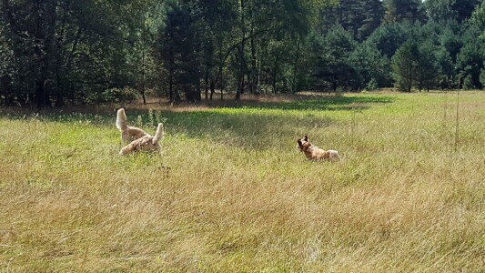 Gestern haben Smilla, Nahla und ich uns mit Sylke, Justus (Autumn Breeze All Inclusive) und Mia zum Training getroffen. Da Bärbel gerade Welpen hat und Peggy auch verhindert war, haben wir uns für eine kurze Trainingseinheit zu zweit getroffen. Bei den sommerlichen Temperaturen war ein langes Training auch gar nicht angebracht.