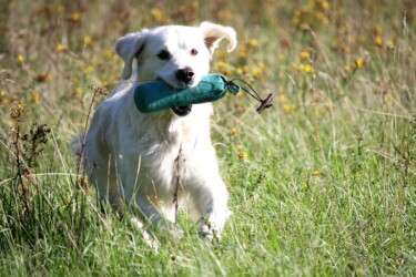 Die als Einzelhund in der Stadt lebende 19 Monate alte Hündin hatte sehr viel Zutrauen innerhalb der Meute. Beute- und Bringtrieb sind passioniert, Spür- und Stöbertrieb nur gering feststellbar. Führigkeit und Heimkehrtrieb waren sehr groß, gegenüber männlichen Personen zeigte sie nur geringes Zutrauen bei einer freundlichen Grundstimmung. Optisch und aktustisch gleichgültig. An Allen drei Schüssen interessiert. Schussfest.